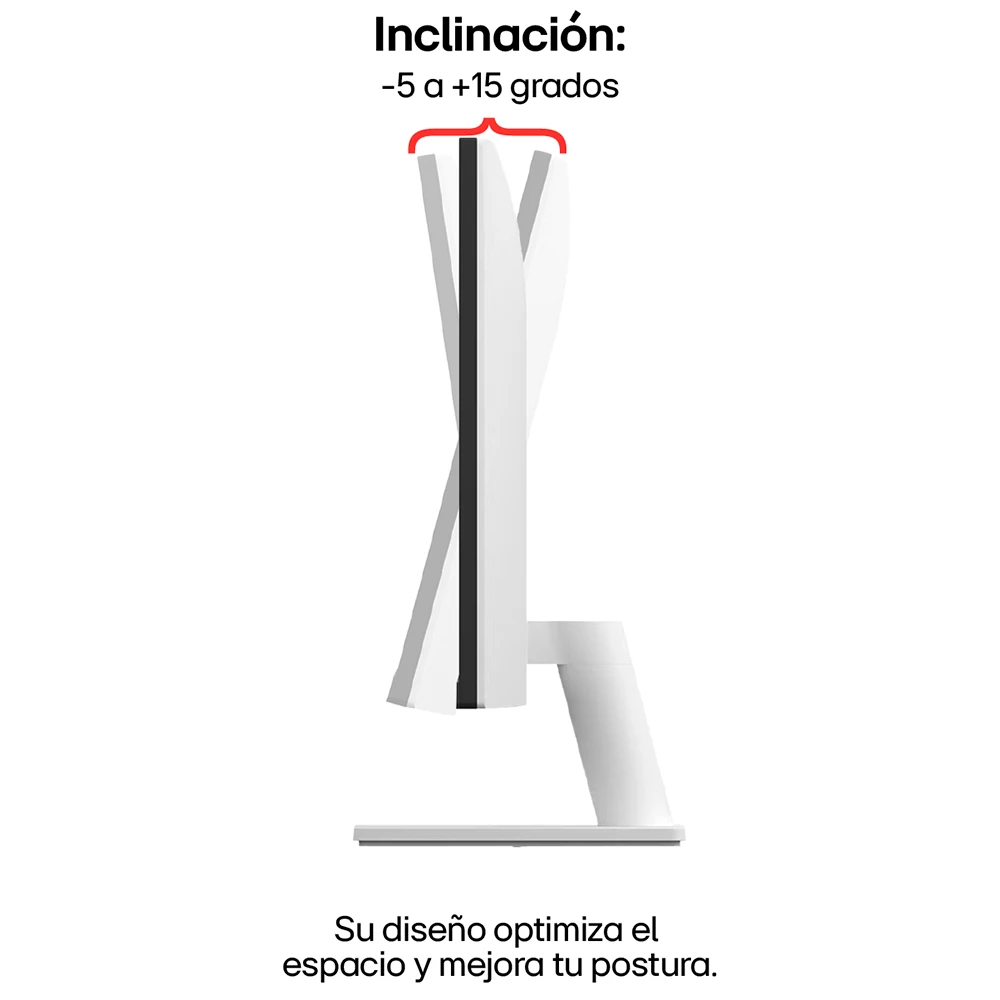 Pensado para integrarse a la perfección en tu espacio, su diseño de bisel delgado y soporte delgado combina funcionalidad con elegancia. Además, el ajuste de inclinación asegura comodidad en largas jornadas de trabajo, ofreciendo la postura ideal para trabajar o disfrutar de tus proyectos. Compacto, versátil y estéticamente impecable, este monitor es una elección perfecta para tu oficina o hogar.