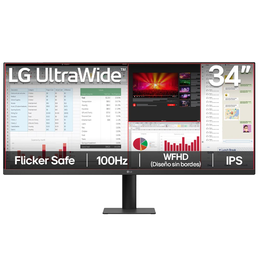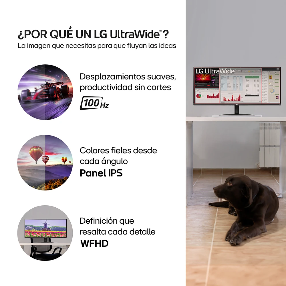 Porque combina amplitud de pantalla, calidad de imagen IPS y fluidez de 100Hz en un diseño moderno, pensado para quienes buscan trabajar y disfrutar contenido con mayor comodidad y detalle.