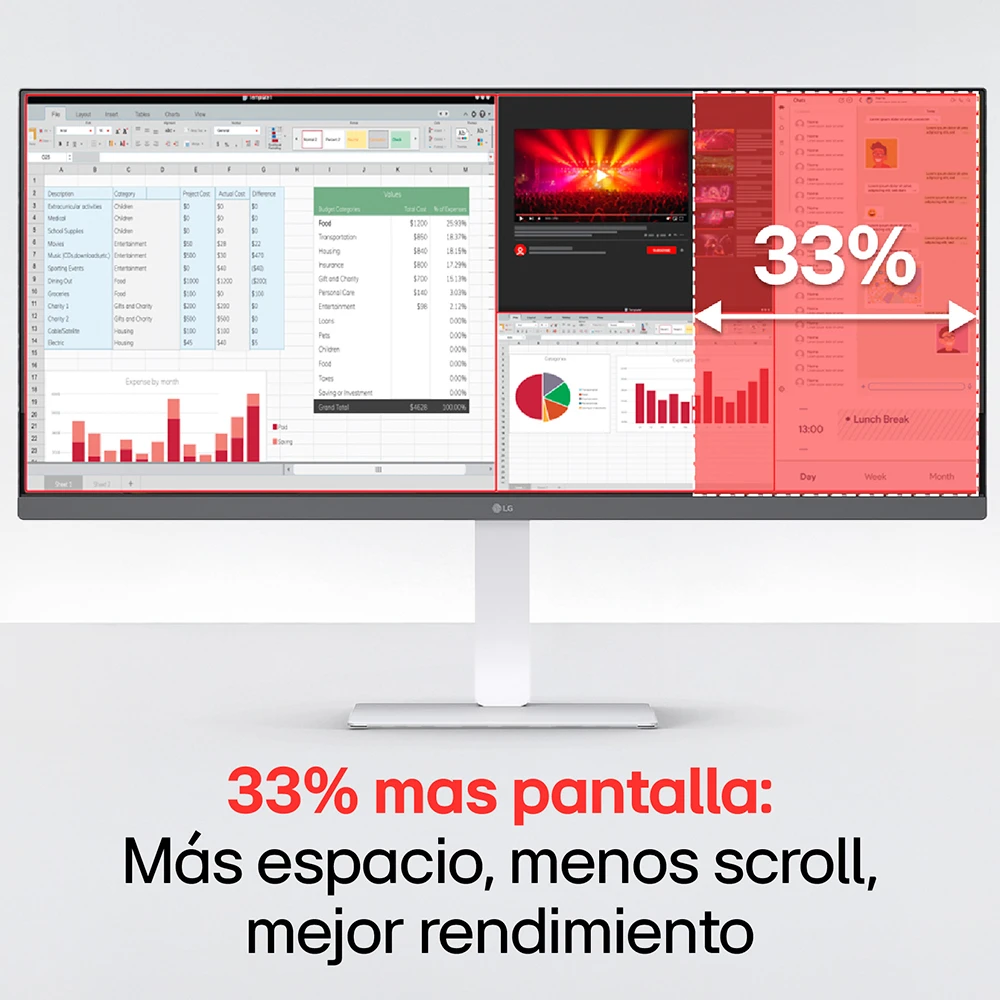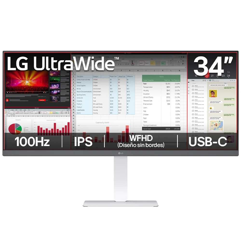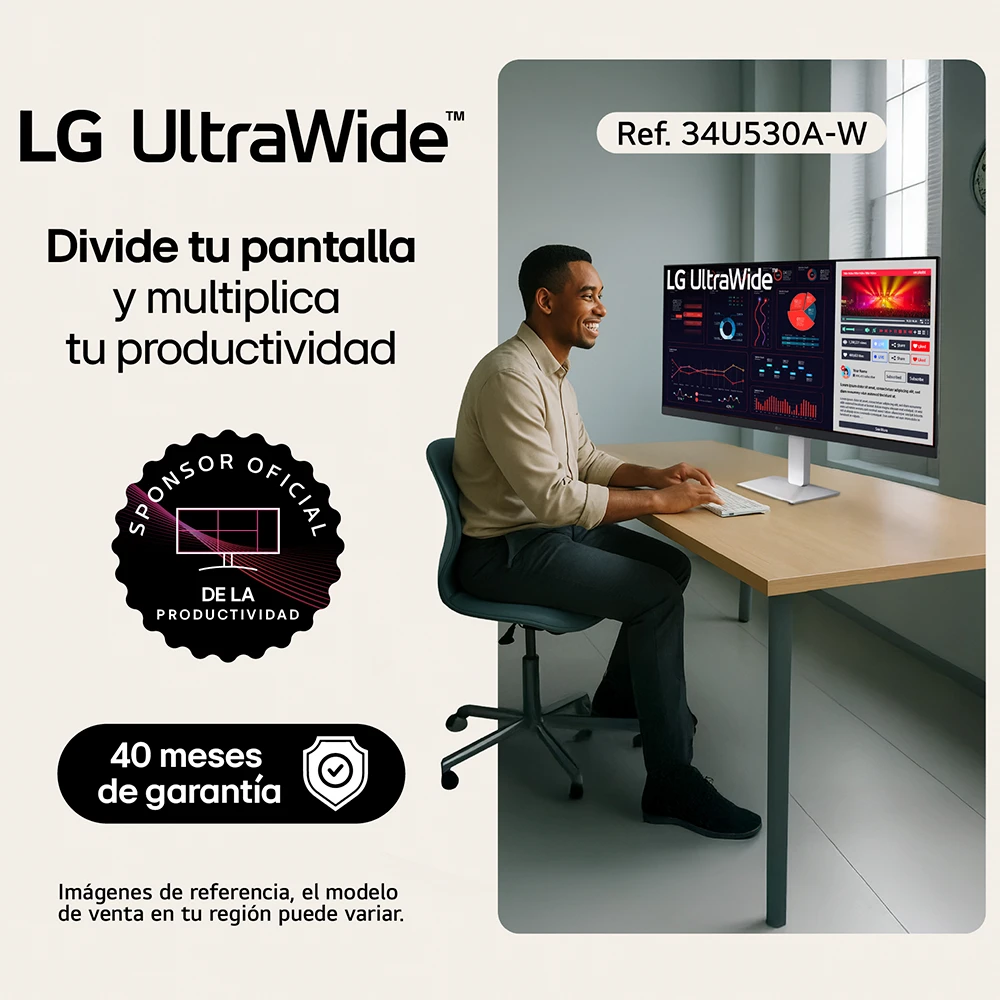 El LG UltraWide 34U530A-W redefine tu espacio de trabajo y entretenimiento con su pantalla curva UltraWide QHD de 34". Con HDR400, USB-C con Power Delivery y altavoces integrados con sonido premium, ofrece imágenes vibrantes y un audio inmersivo en un solo dispositivo. Su formato panorámico 21:9 proporciona un 33% más de espacio que un monitor convencional, ideal para multitarea, edición de contenido y experiencias de cine en casa.