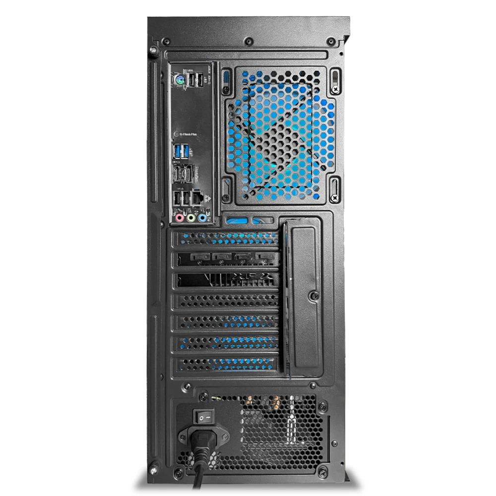 El equipo está ensamblado dentro del elegante chasis Gamdias AURA GC5 ELITE ARGB, con ventilación frontal ARGB y posterior, y alimentado por una fuente Gamdias 650W Bronze que garantiza eficiencia y respaldo en cada tarea.