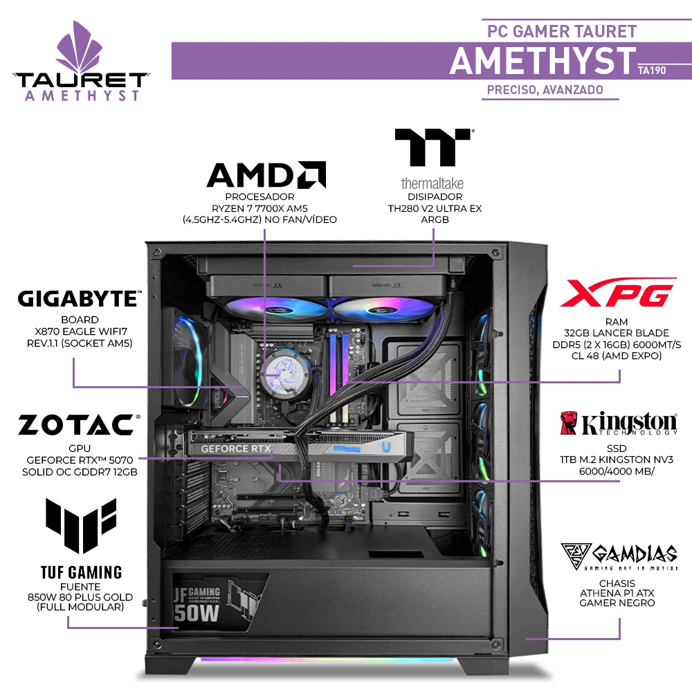 Pregunta sobre PC Gamer Tauret Amethyst TA190 AMD Ryzen 7 7700X RTX 5070 12GB RAM 32GB M.2 1TB