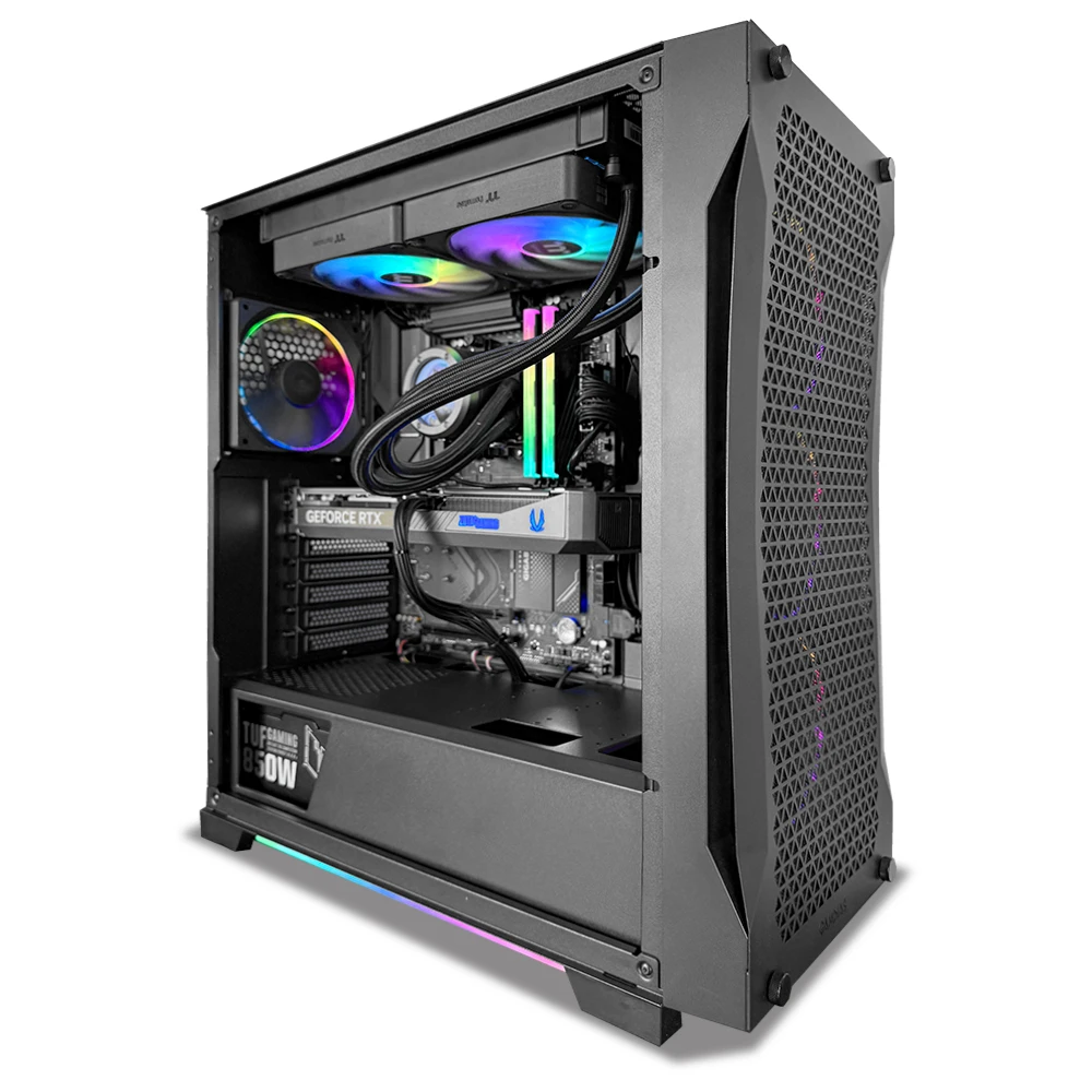 Este equipo incorpora 32GB de memoria DDR5 (2x16GB) a 6000MT/s con perfil AMD EXPO, 1TB de almacenamiento M.2 NVMe Kingston NV3 para cargas rápidas y una refrigeración líquida Thermaltake TH280 V2 Ultra EX ARGB, que mantiene temperaturas estables bajo uso exigente. Todo se ensambla en el Gamdias Athena P1 ATX en color negro, con 3 ventiladores frontales ARGB y 1 trasero ARGB que optimizan el flujo de aire, alimentado por una fuente Asus TUF Gaming de 850W 80 Plus Gold Full Modular para máxima estabilidad y eficiencia.