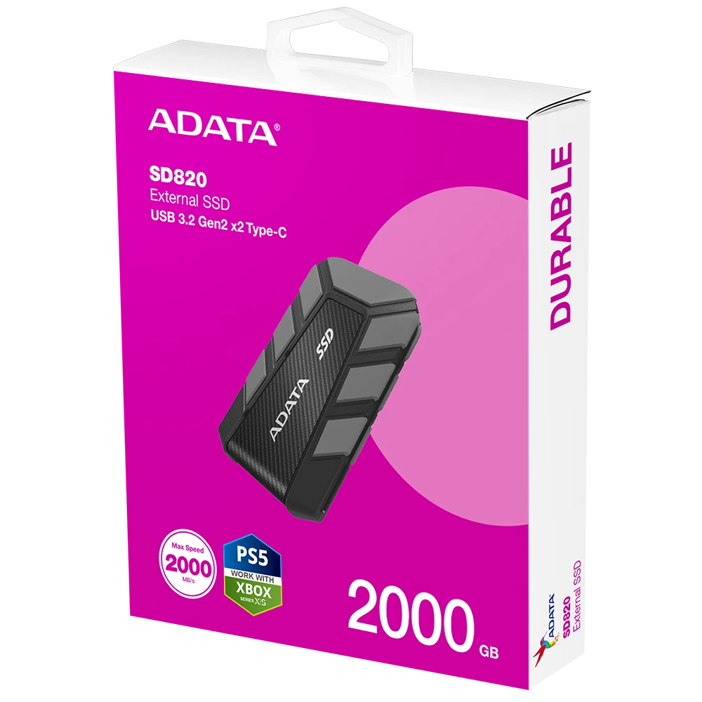 El ADATA SD820 External SSD es una unidad de estado sólido externa diseñada para ofrecer almacenamiento rápido, portátil y resistente. Gracias a su interfaz USB de alta velocidad, permite transferencias rápidas de archivos, ideal para mover videos, fotos, proyectos o respaldos de forma eficiente.