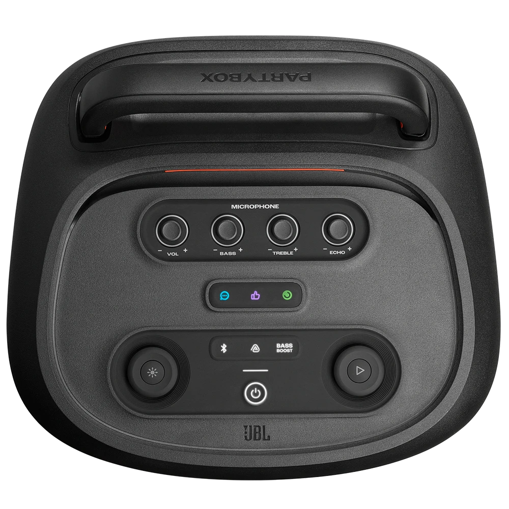La JBL PartyBox 520 es una bocina portátil de alto rendimiento diseñada para llevar la fiesta a otro nivel. Ofrece el potente sonido JBL Pro Sound con bajos profundos, gran claridad y volumen suficiente para espacios amplios, tanto en interiores como al aire libre.