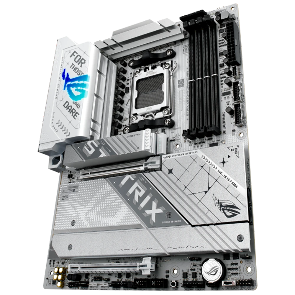 Diseñada para elevar tu experiencia, la ROG Strix X870-A Gaming WiFi combina un diseño sofisticado con tecnología de última generación. Su elegante PCB blanco no solo resalta en cualquier configuración, sino que está optimizada para procesadores AMD Ryzen 9000 Series, ofreciendo un rendimiento excepcional para aplicaciones avanzadas, incluyendo inteligencia artificial.