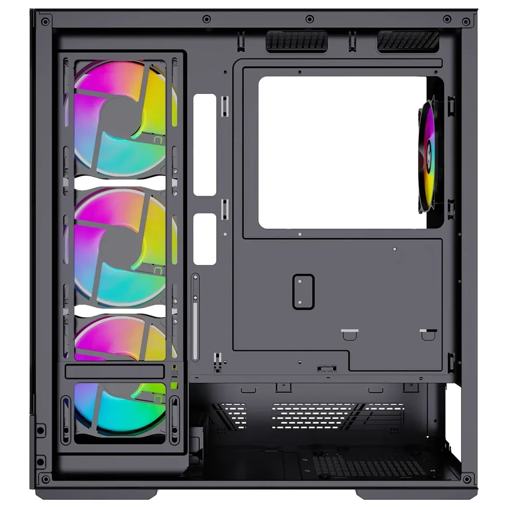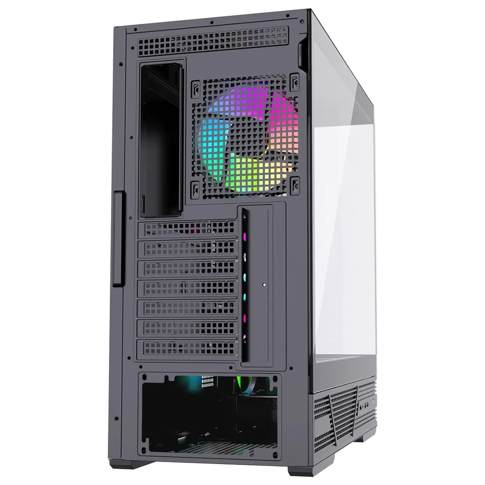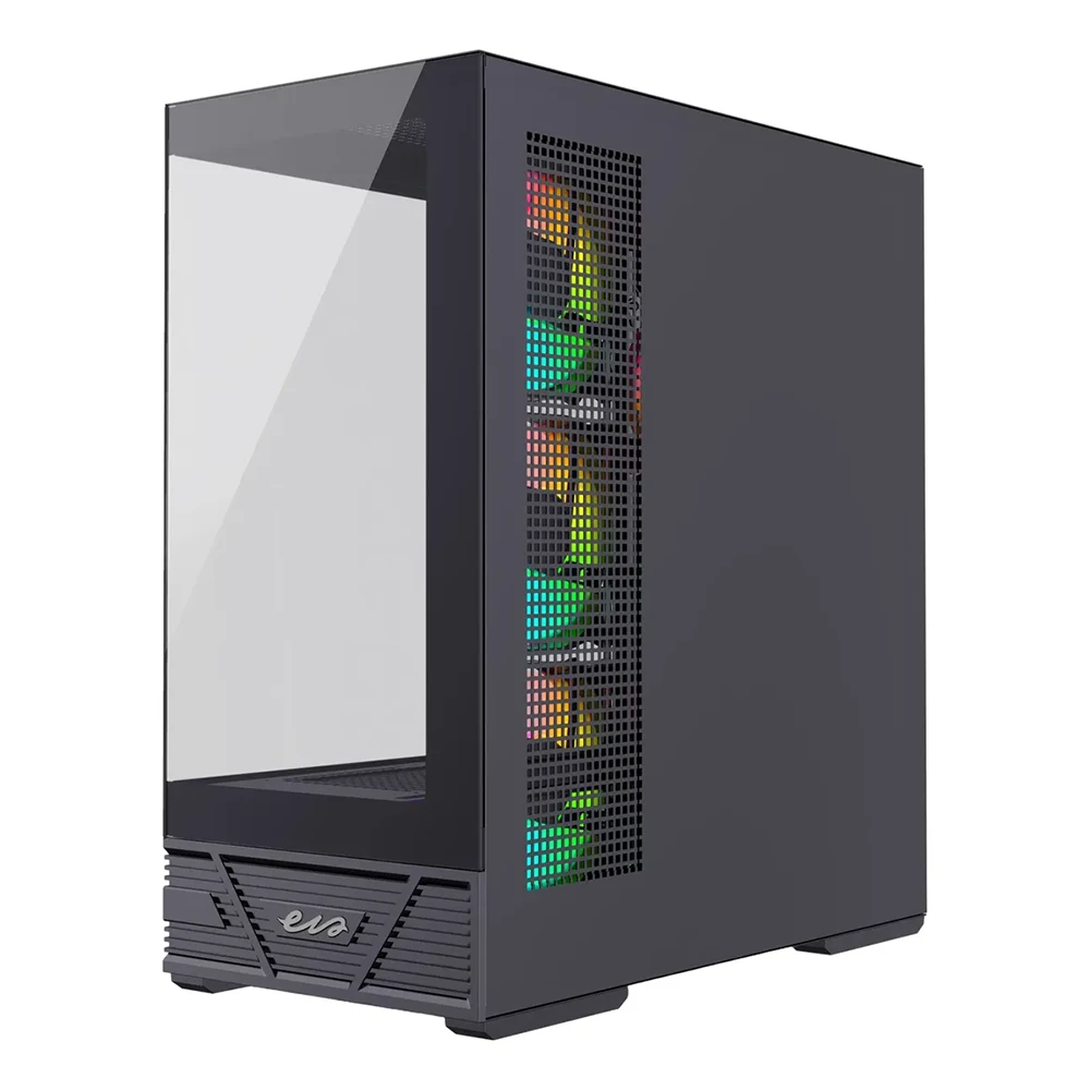 El Gabinete Gamer EVA Cosmic 25A es la base perfecta para armar tu PC gamer con estilo, rendimiento térmico eficiente y una estética visual impactante. Diseñado para tarjetas madre ATX, este gabinete combina una estructura sólida con seis ventiladores ARGB preinstalados, ofreciendo un flujo de aire optimizado que mantiene tus componentes frescos incluso en sesiones intensas de juego.