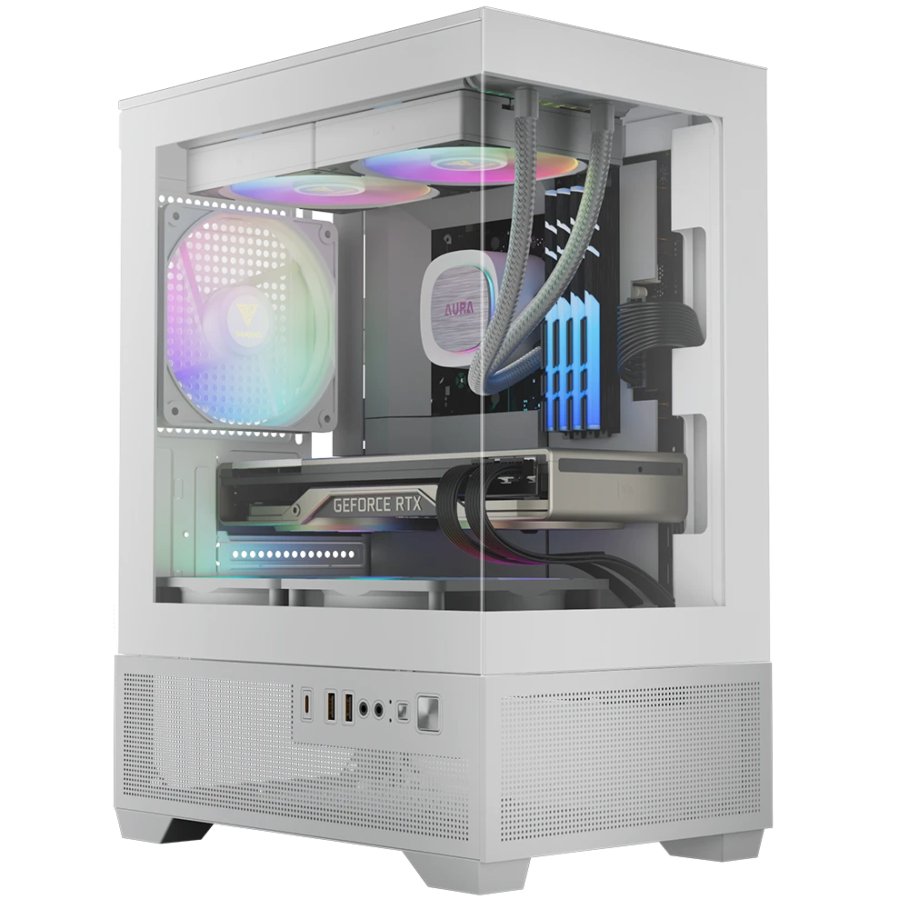 El GAMDIAS ATLAS E2 CG combina rendimiento térmico, diseño elegante y funcionalidad moderna en un chasis compacto tipo Mid Tower. Diseñado para quienes buscan un equilibrio entre espacio eficiente, buena ventilación y estética limpia, este gabinete incluye ventiladores ARGB preinstalados y un panel frontal mallado que mejora la entrada de aire sin sacrificar el estilo.