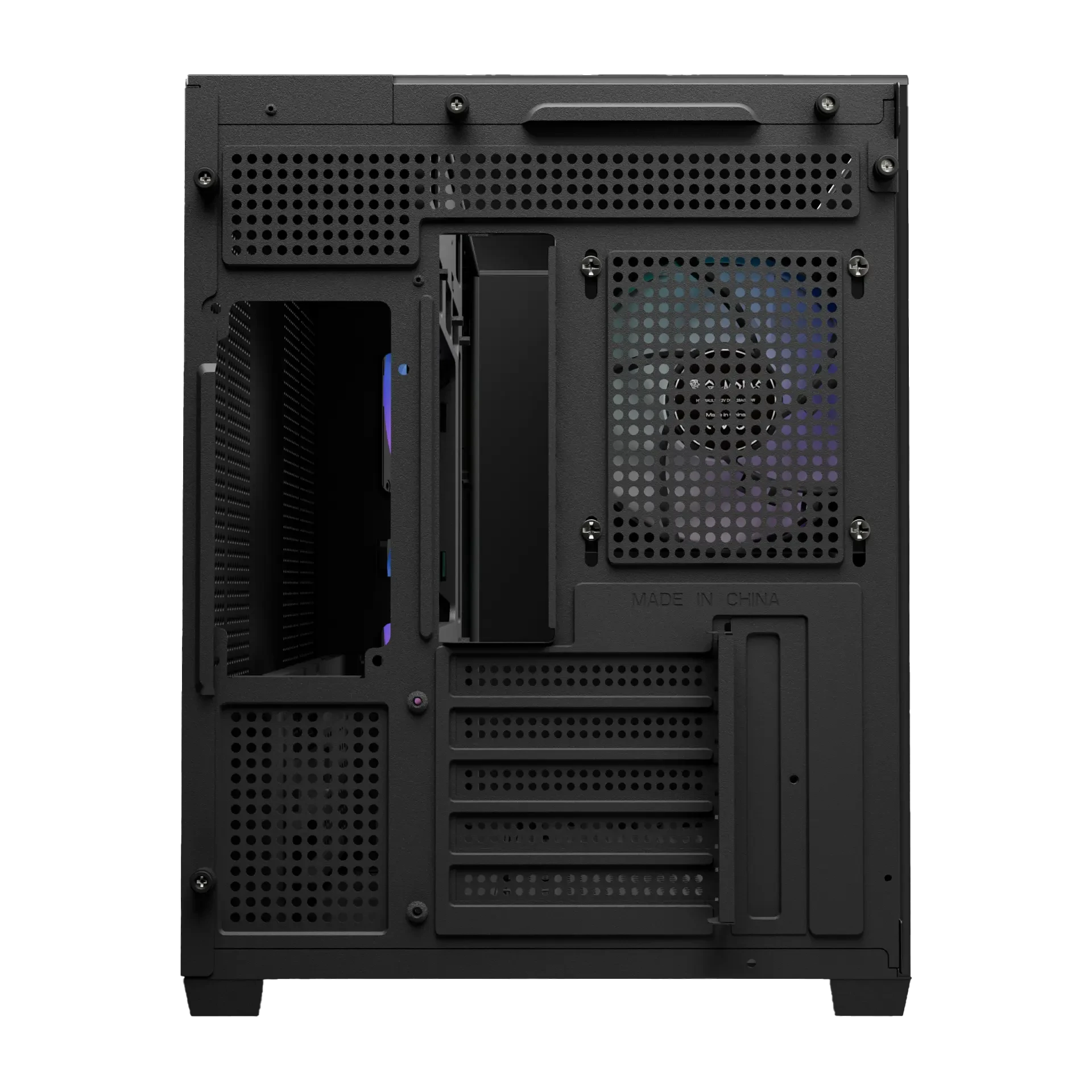 ✔ Diseño panorámico de triple vidrio templado – Visualización completa del hardware