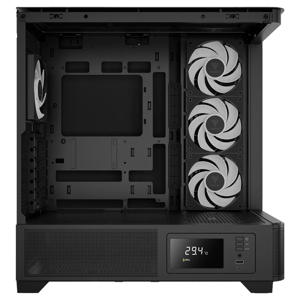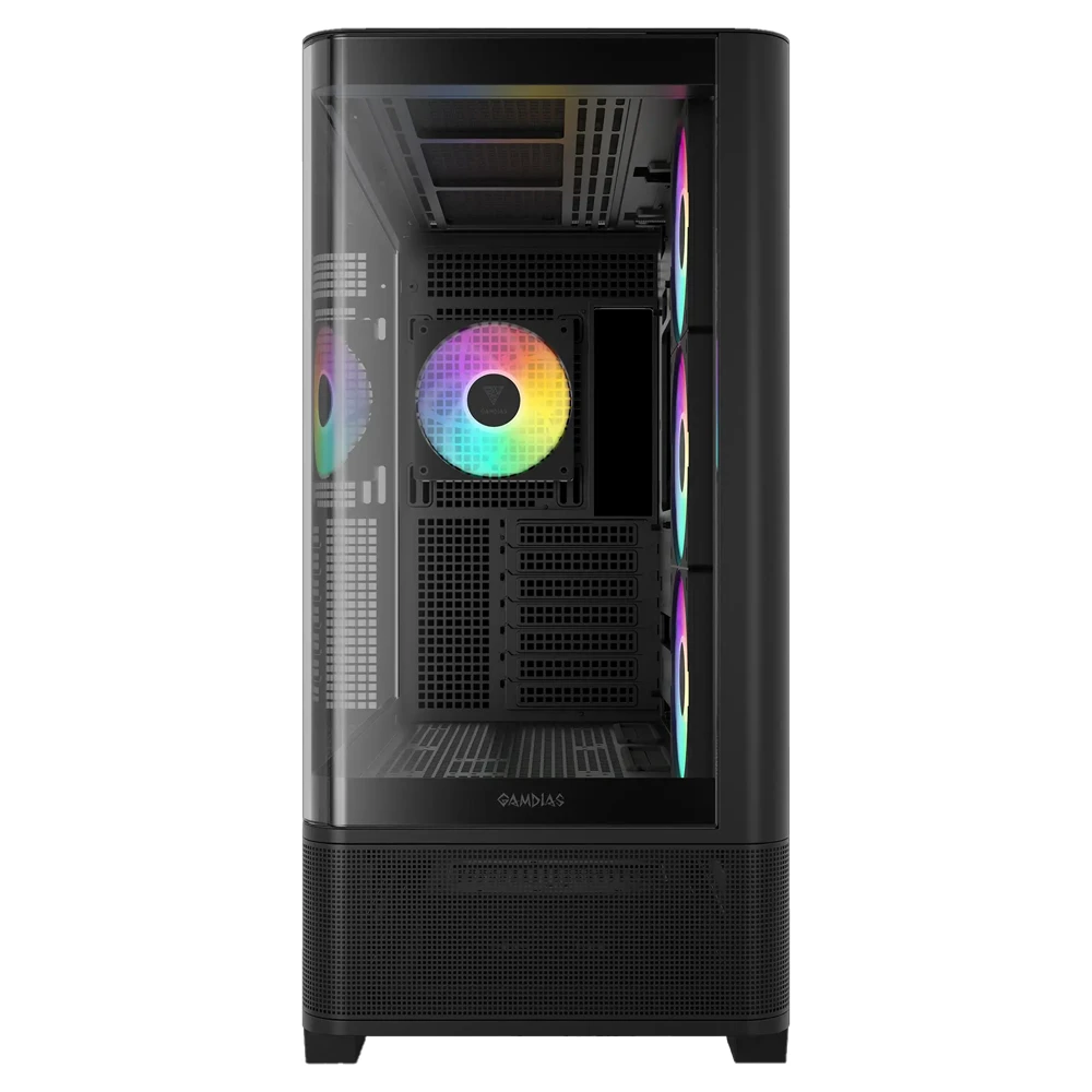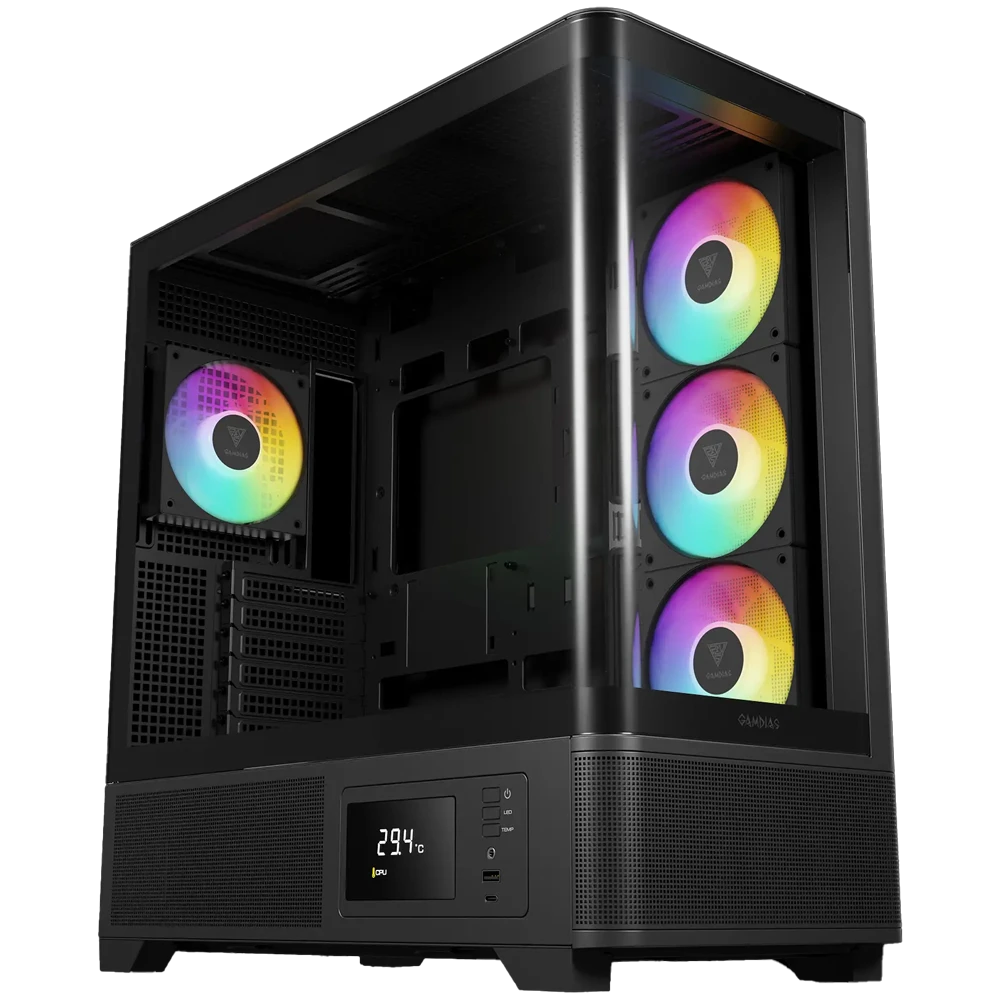 El GAMDIAS ATLAS P2 CG es un chasis diseñado para setups modernos que buscan destacar tanto en estética como en rendimiento. Su espectacular diseño con vidrio templado curvo panorámico de 270° permite mostrar todos los componentes sin interrupciones, logrando un acabado tipo “pecera” totalmente limpio y profesional.