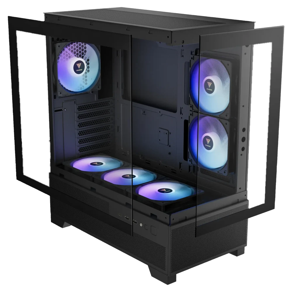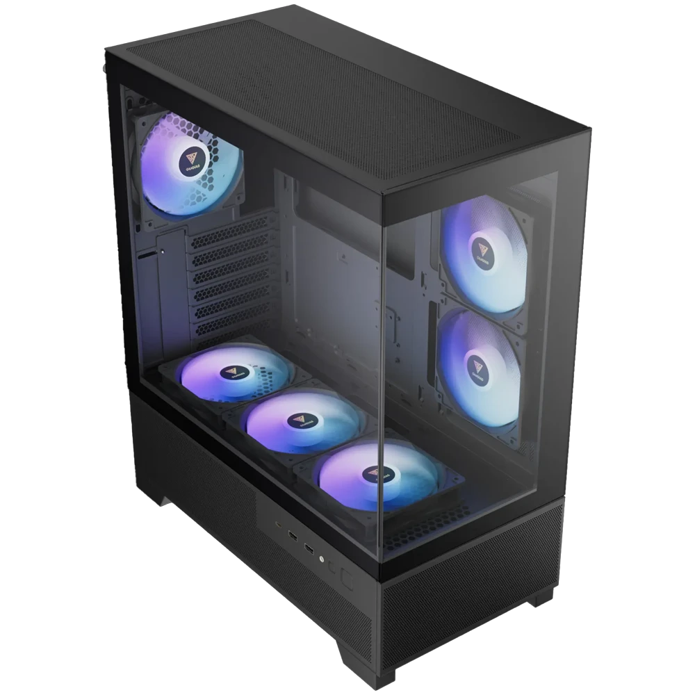 Integra múltiples ventiladores ARGB preinstalados que garantizan una refrigeración eficiente desde el primer uso, junto con un diseño interno optimizado para facilitar la instalación y la gestión de cables. Además, ofrece amplio espacio para tarjetas gráficas de gran tamaño y soporte para refrigeración líquida, convirtiéndolo en una excelente opción para builds gaming modernos.