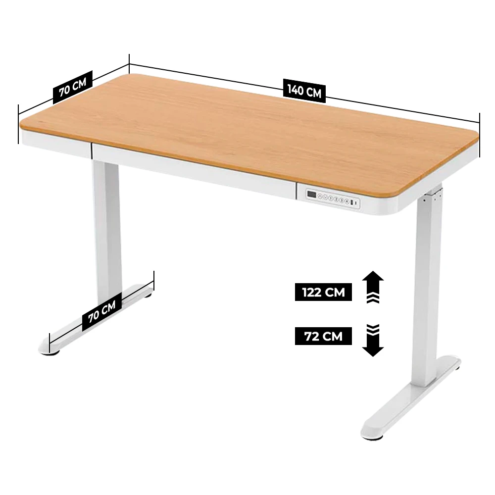 Construido con acero resistente, este escritorio garantiza estabilidad y durabilidad, soportando una carga máxima de hasta 45 kilogramos. Además, su diseño incluye un práctico cajón para mantener tus accesorios organizados y al alcance de la mano.