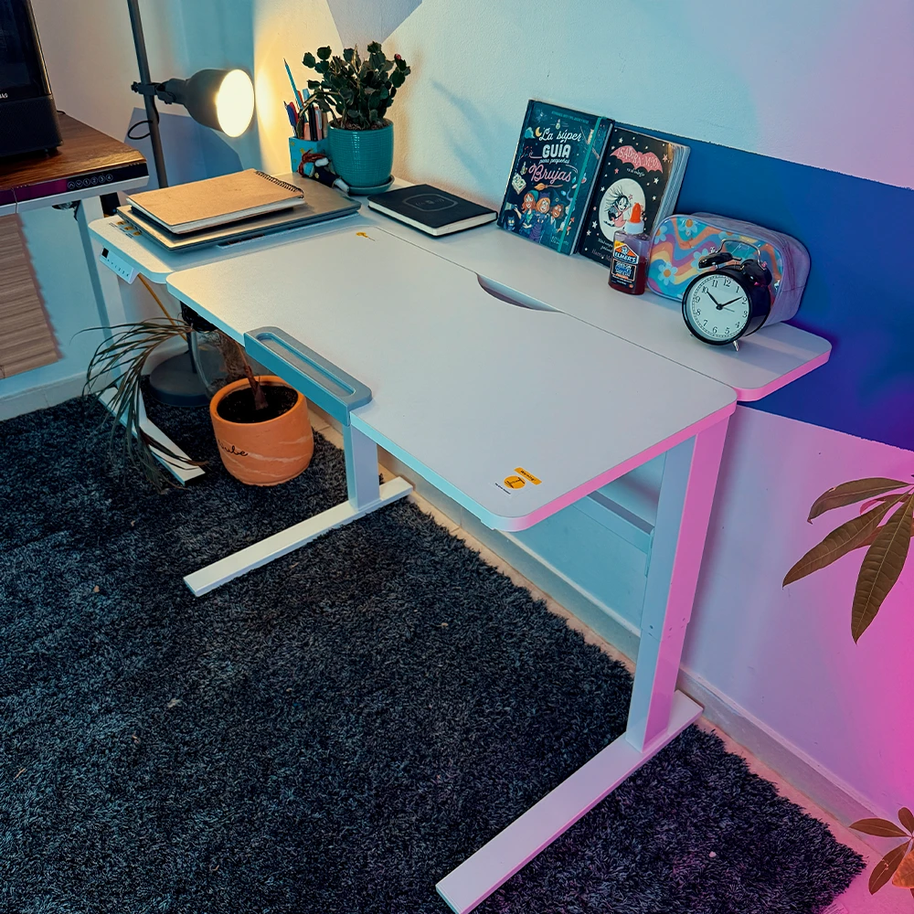 El Tauret Rising Plánika Desk es un escritorio ajustable eléctrico diseñado especialmente para niños y jóvenes. Su superficie amplia, acabado en blanco y estructura estable ofrecen un espacio moderno, cómodo y seguro para estudiar, leer, dibujar o usar el computador. Gracias a su motor de elevación, el escritorio puede ajustarse fácilmente en altura para adaptarse al crecimiento del niño y fomentar hábitos saludables de estudio.