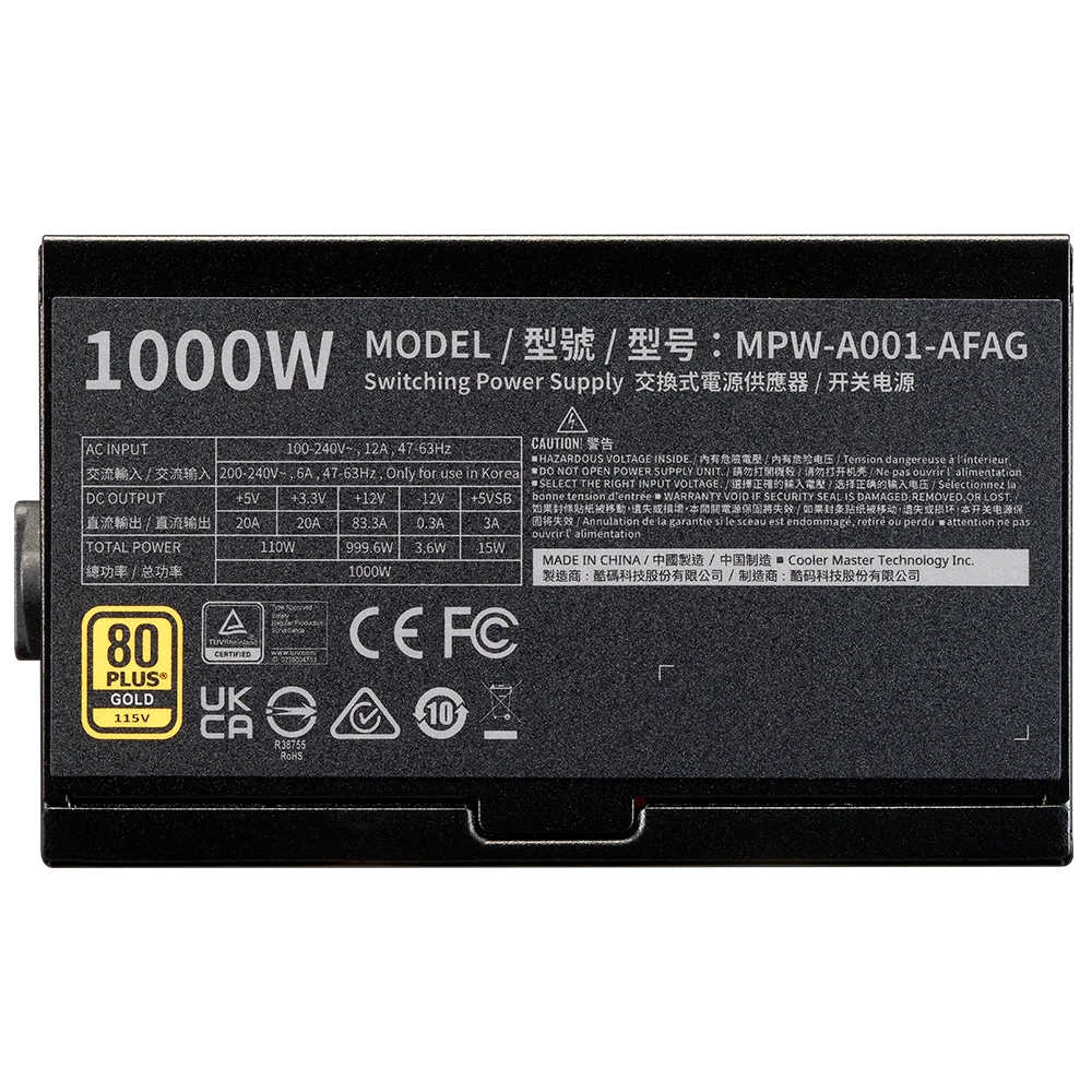 Fuente De Poder Cooler Master ELITE GOLD 1000W ATX 3.1 80 Plus Gold (Full Modular)
