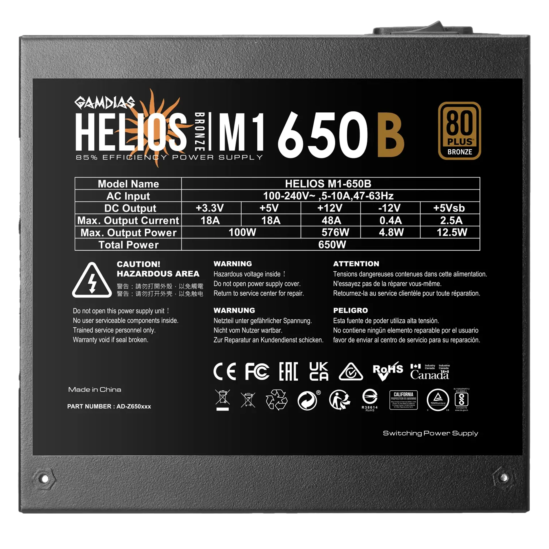 Fuente De Poder Gamdias Helios M1-650 80 Plus Bronce -OEM-