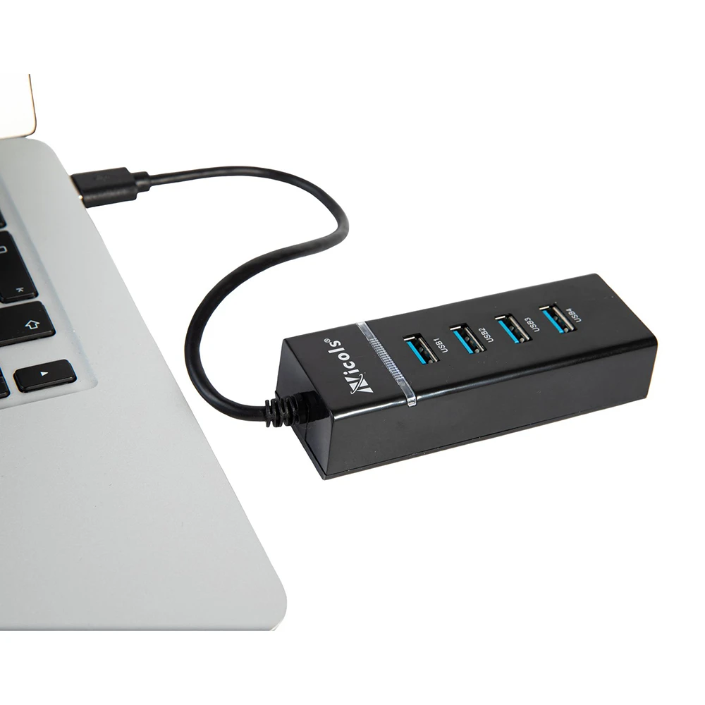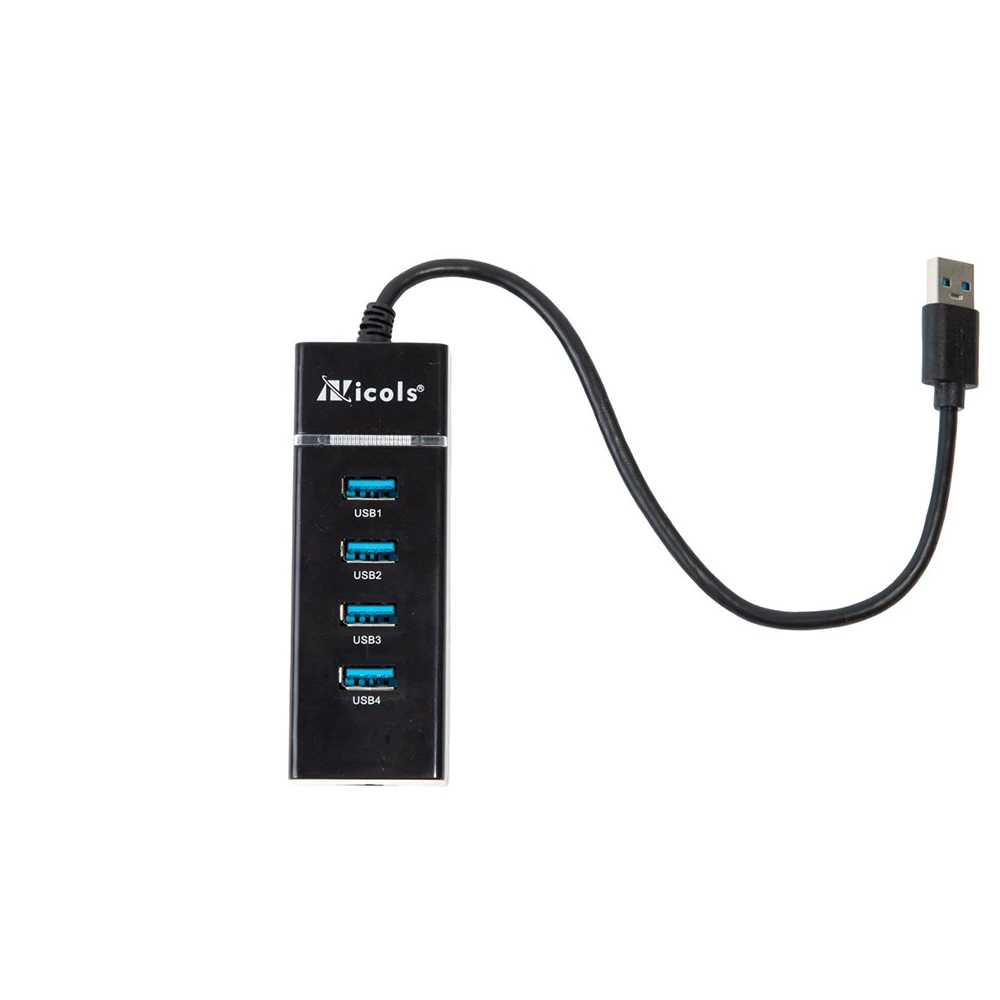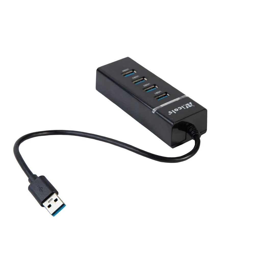 El Hub USB 3.0 de 4 puertos Nicols es la solución ideal para quienes necesitan expandir la conectividad de su equipo de forma rápida y eficiente. Este dispositivo permite transformar un único puerto USB en cuatro entradas adicionales de alta velocidad, manteniendo un diseño compacto y ligero que lo hace perfecto tanto para el escritorio como para llevar en el maletín de la laptop.