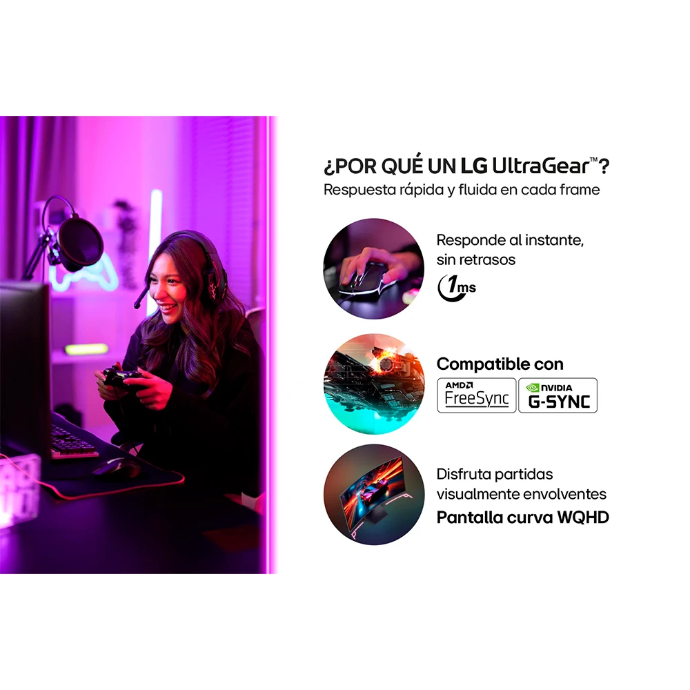 Es ideal para gamers que buscan una experiencia más inmersiva y competitiva, usuarios que disfrutan de simuladores, shooters o juegos de mundo abierto, y profesionales que necesitan un monitor amplio para multitarea, edición ligera o trabajo con varias aplicaciones al mismo tiempo.