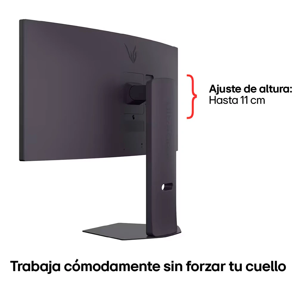 El LG 34G600A-B es un monitor gaming ultrawide de 34 pulgadas diseñado para ofrecer una experiencia visual inmersiva, fluida y envolvente. Su formato panorámico y alta tasa de refresco permiten una mayor amplitud de visión, ideal tanto para juegos como para trabajo multitarea, brindando más espacio en pantalla y una experiencia más cómoda y productiva.