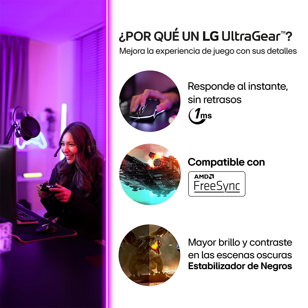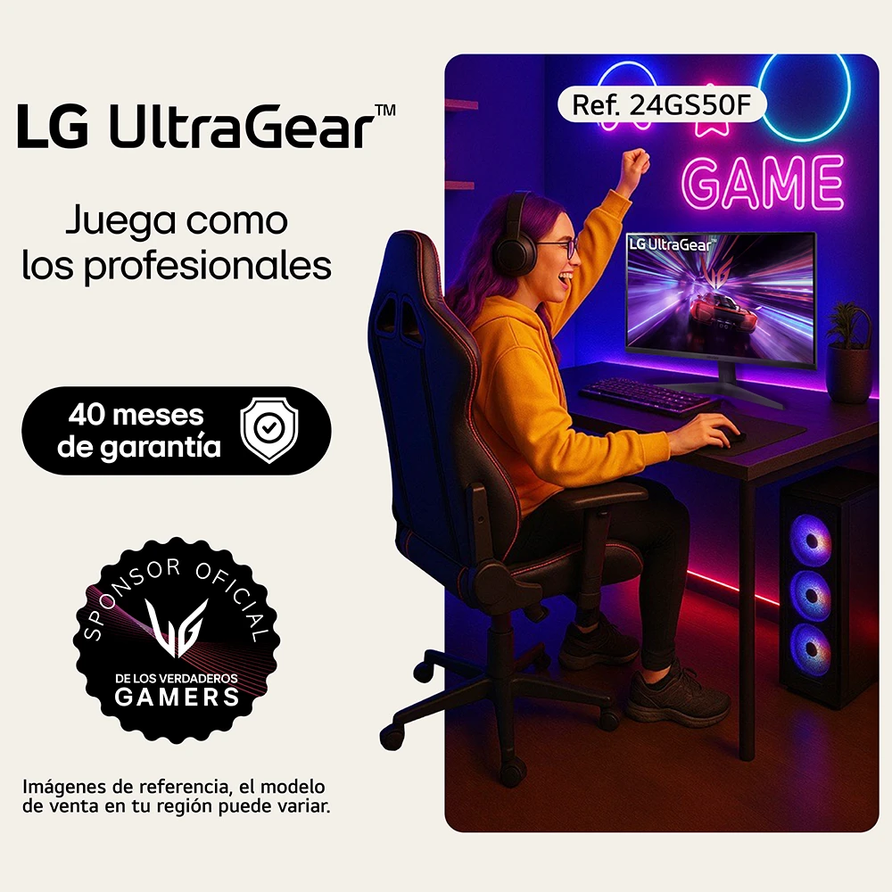 Con el LG UltraGear 24GS50F-B, estarás un paso adelante en cada partida. Potencia tu experiencia de juego con una velocidad, calidad de imagen y rendimiento diseñados para la victoria. ¡Hazte con el tuyo y domina el campo de batalla!