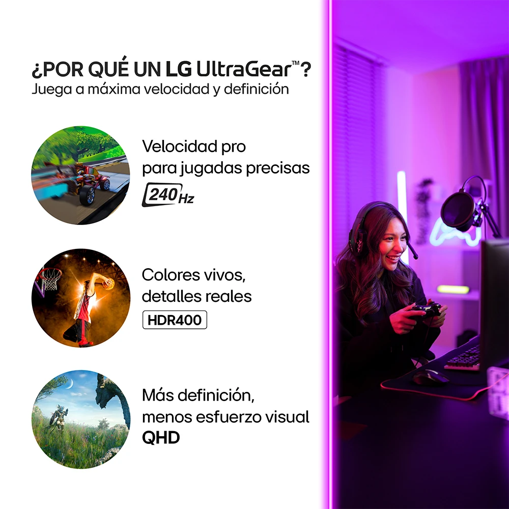 Resolución QHD (2560x1440): Mayor nivel de detalle para juegos y productividad.