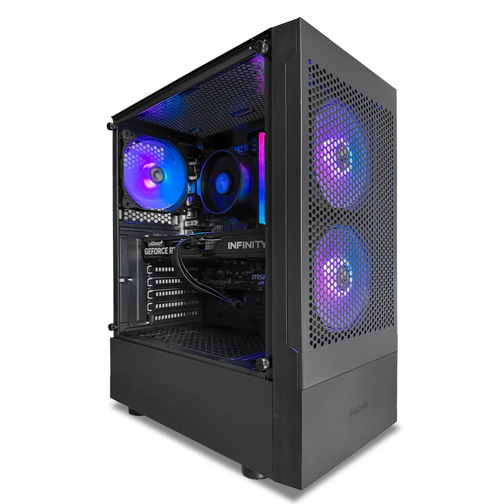 Incluye 16GB de RAM RGB DDR4, almacenamiento PCIe 4.0 NVMe de 1TB y una configuración térmica con tres ventiladores ARGB para mantener temperaturas óptimas incluso en sesiones prolongadas. Todo esto en el chasis Gamdias TALOS E3, con panel lateral en vidrio templado y diseño agresivo ideal para setups gamer.