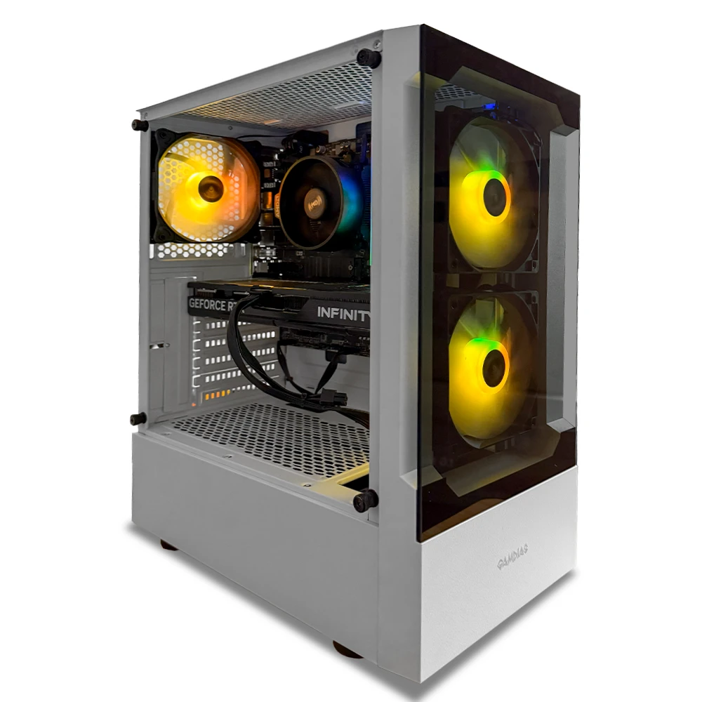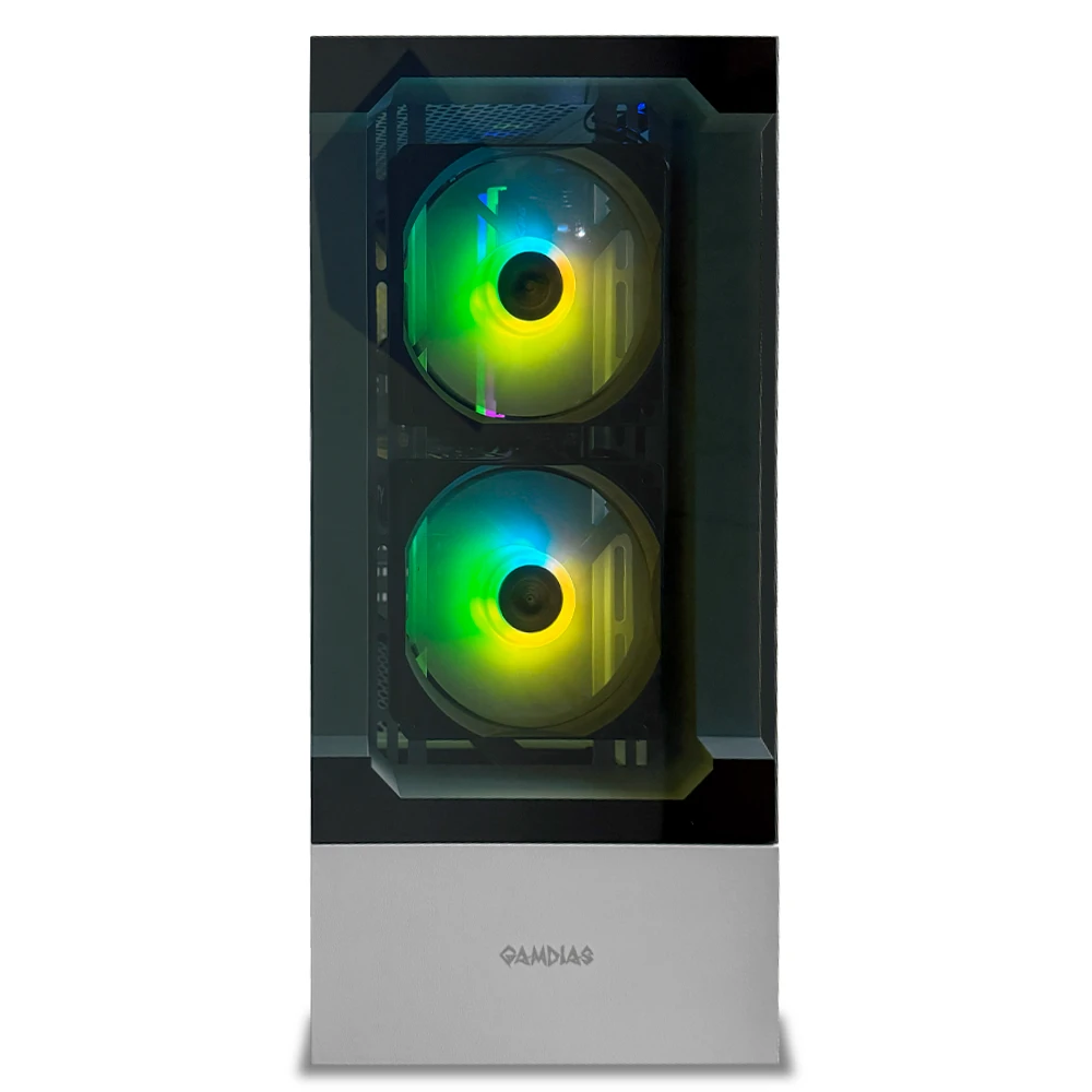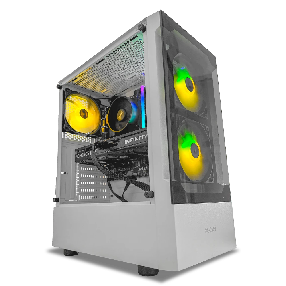 Incluye 16GB de RAM RGB DDR4, almacenamiento PCIe 4.0 NVMe de 1TB y una configuración térmica con tres ventiladores ARGB para mantener temperaturas óptimas incluso en sesiones prolongadas. Todo esto en el chasis Gamdias TALOS E3, con panel lateral en vidrio templado y diseño agresivo ideal para setups gamer.