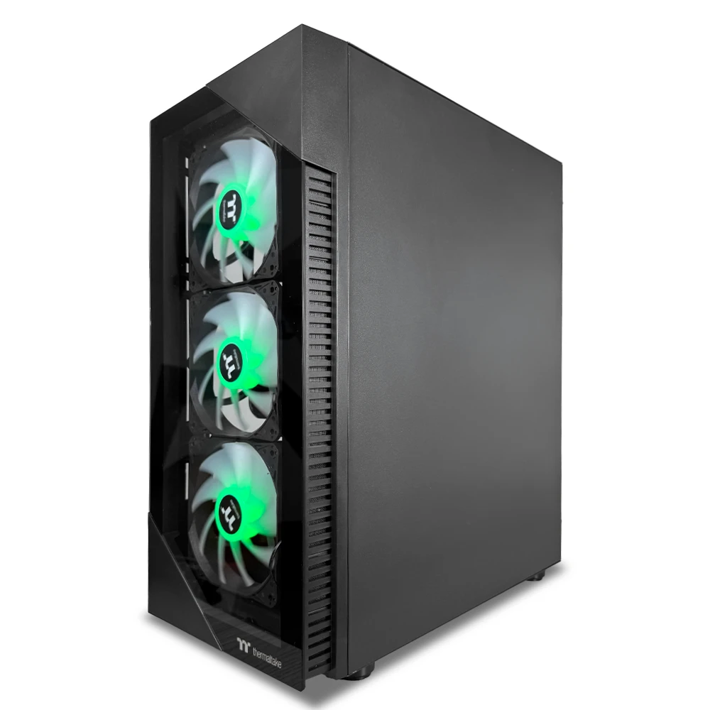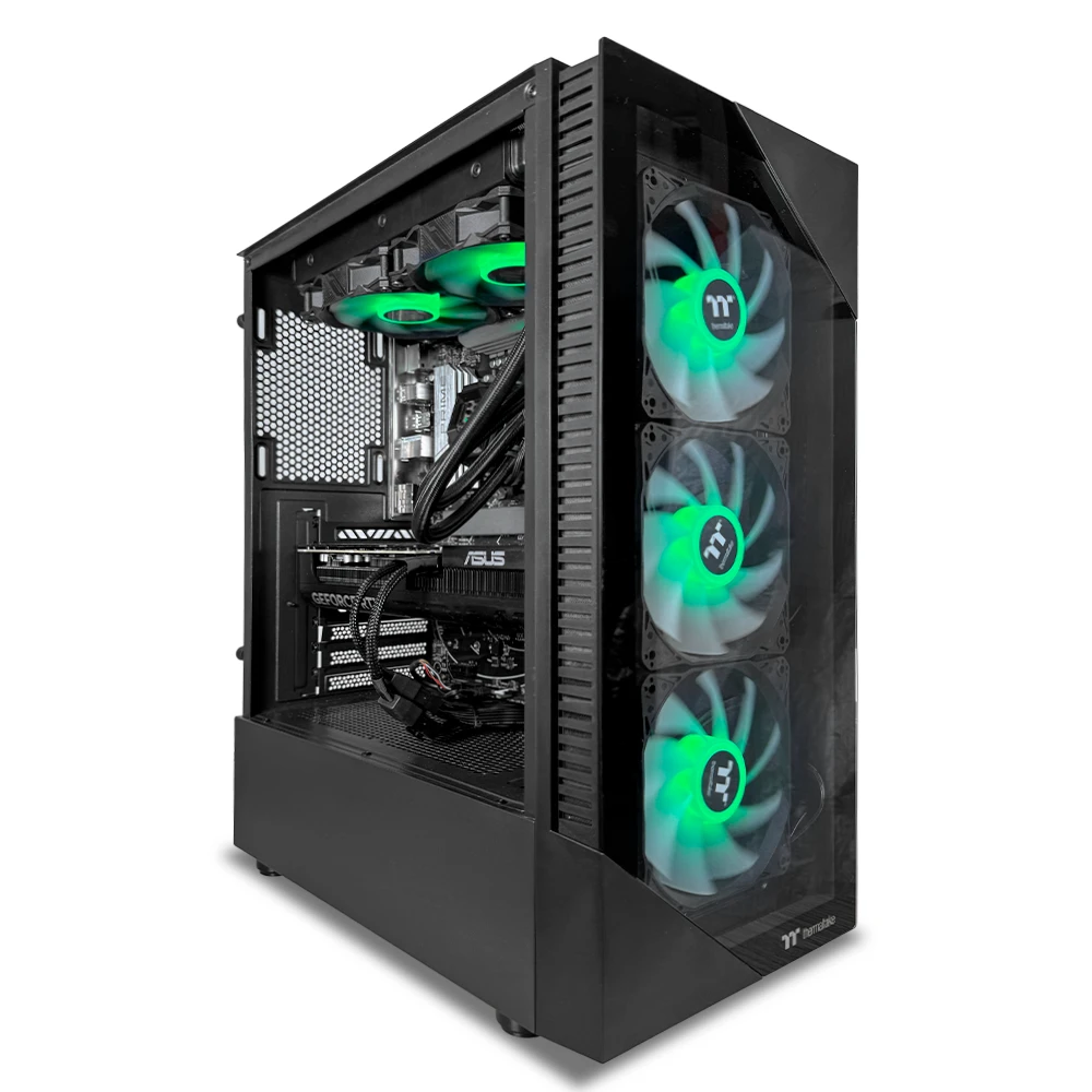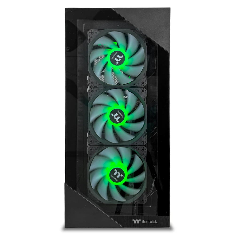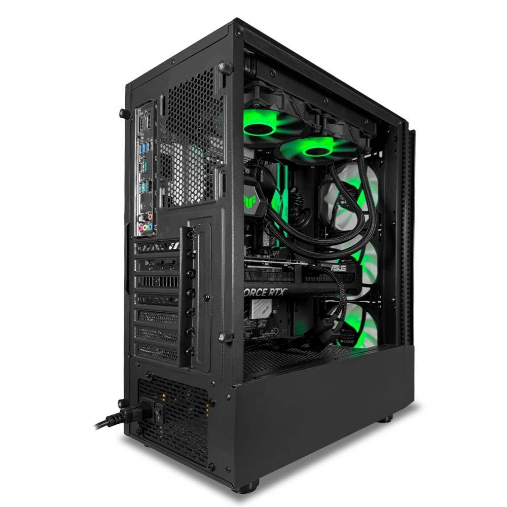 Complementado con 32GB de RAM DDR5 XPG RGB y una unidad SSD NVMe KC3000 de 1TB, este equipo garantiza tiempos de carga ultrarrápidos y respuesta inmediata. Su sistema de refrigeración líquida ASUS TUF LC 240 ARGB mantiene las temperaturas bajo control, mientras que el chasis Thermaltake View 200 TG ARGB entrega un diseño llamativo con excelente flujo de aire y cuatro ventiladores incluidos.