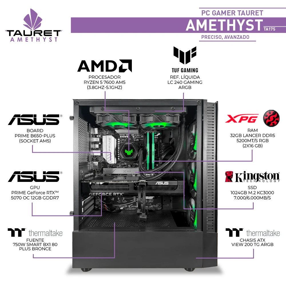 PC Gamer Tauret Amethyst TA175 AMD Ryzen 5 7600 RTX 5070 12GB RAM 32GB M.2 1024GB