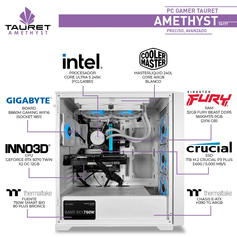 PC Gamer Tauret Amethyst TA177 Intel Core Ultra 5 245K RTX 5070 12GB RAM 32GB M.2 1TB