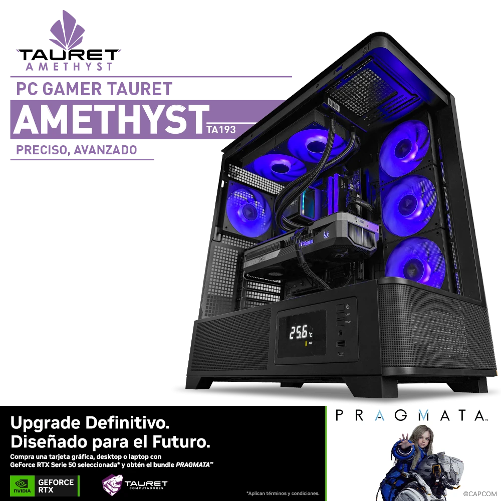 El Tauret Amethyst TA193 está diseñado para usuarios que buscan rendimiento extremo en gaming y creación de contenido, con una configuración de alto nivel sobre plataforma AM5. Integra el AMD Ryzen™ 7 7700X, un procesador potente y eficiente para juegos y multitarea, acompañado por la Zotac Gaming GeForce RTX 5080 SOLID CORE de 16GB GDDR7, una gráfica de última generación preparada para ofrecer máximo desempeño en títulos exigentes y escenarios de alta carga gráfica.