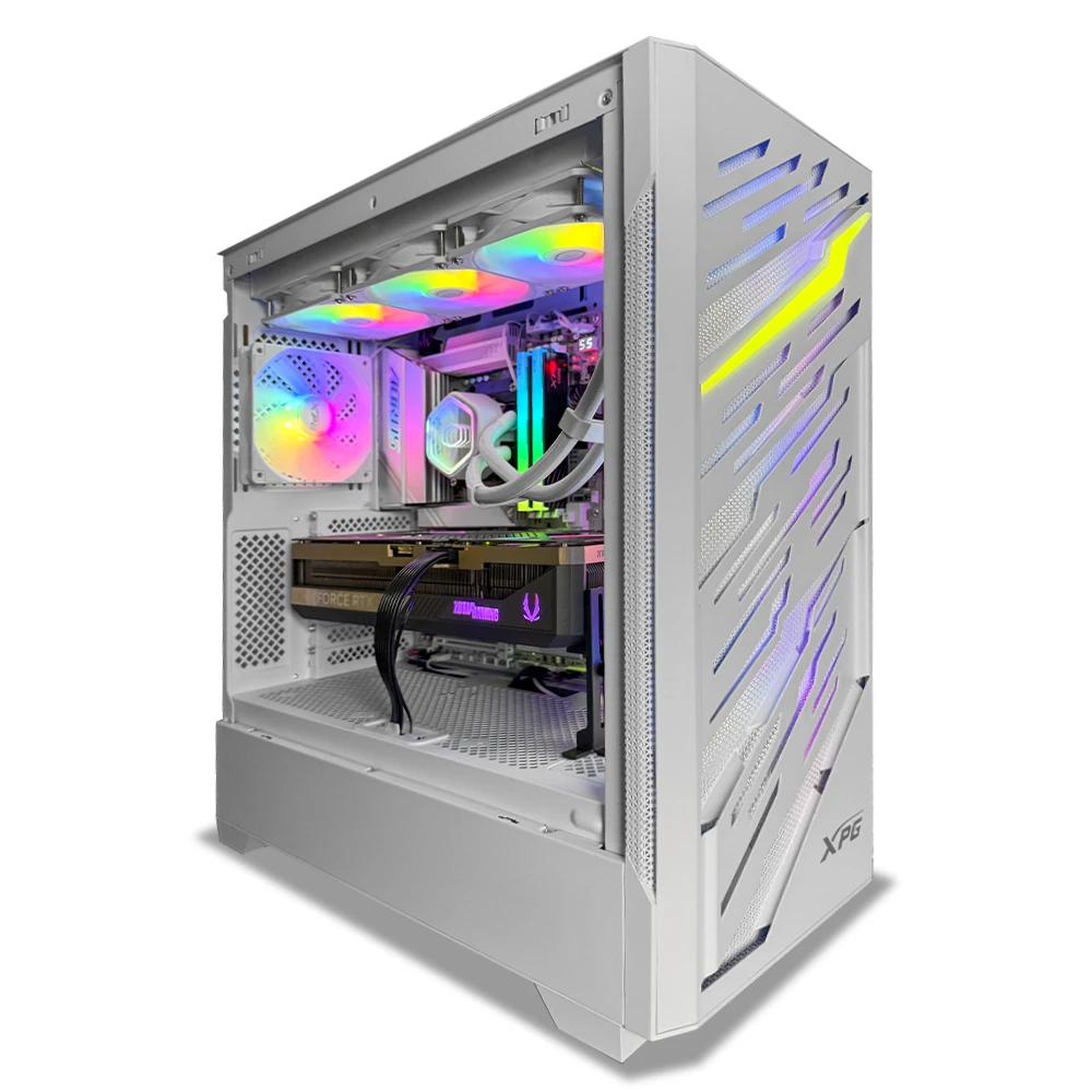 Este equipo incorpora 48GB de memoria DDR5 (2x24GB) a 6000MT/s con perfil AMD EXPO, 2TB de almacenamiento M.2 NVMe Kingston NV3 para máxima capacidad y velocidad, y una refrigeración líquida Cooler Master MasterLiquid 360 Core II RGB en color blanco, que garantiza temperaturas estables bajo cargas intensivas. Todo se ensambla en el XPG STARKER AIR BTF ATX en color blanco, con 3 ventiladores frontales y 1 trasero que optimizan el flujo de aire, alimentado por una fuente Gamdias Helios P2 de 1000W 80 Plus Gold Full Modular para asegurar estabilidad energética en configuraciones de alto consumo.
