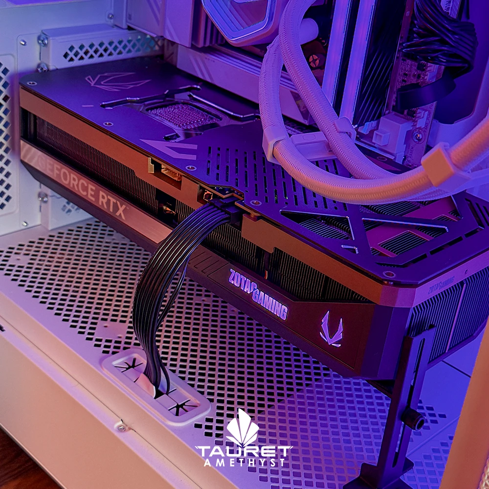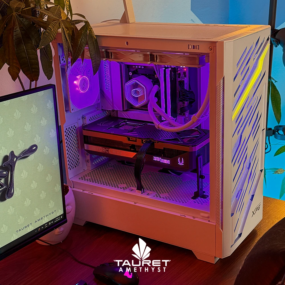 El Tauret Amethyst TA194 está diseñado para quienes buscan máximo rendimiento sin compromisos, tanto en gaming de última generación como en cargas profesionales exigentes. Integra el AMD Ryzen™ 9 9900X3D, un procesador de alto nivel con tecnología avanzada orientada a maximizar el rendimiento en juegos y multitarea, acompañado por la Zotac Gaming GeForce RTX 5090 SOLID de 32GB GDDR7, una de las GPUs más potentes del mercado, preparada para ofrecer desempeño extremo en cualquier escenario gráfico.