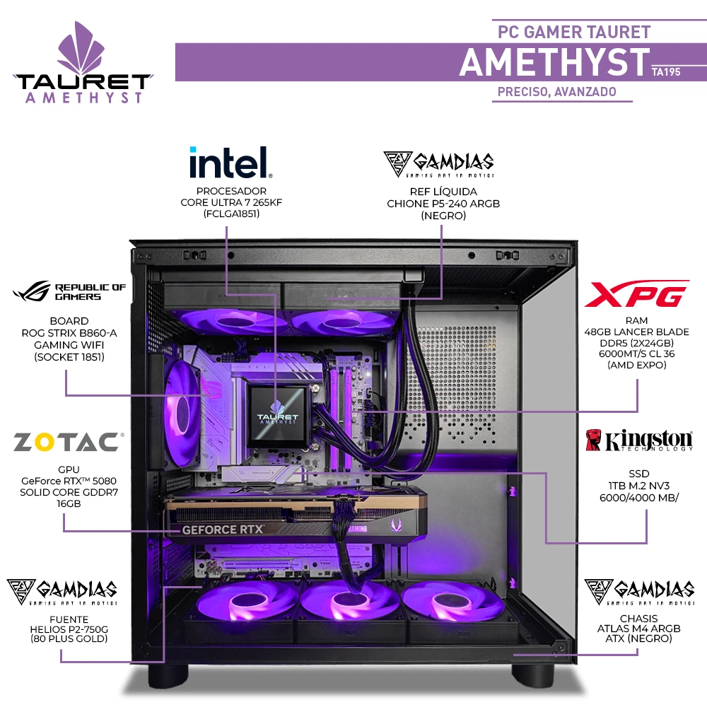 Pregunta sobre PC Gamer Tauret Amethyst TA195 Intel Core Ultra 7 265KF RTX 5080 16GB RAM 48GB M.2 1TB