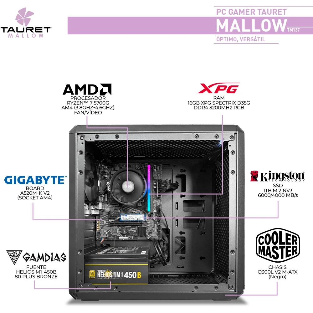 Pregunta sobre PC Gamer Tauret Mallow TM137 AMD Ryzen 7 5700G RAM 16GB M.2 1TB