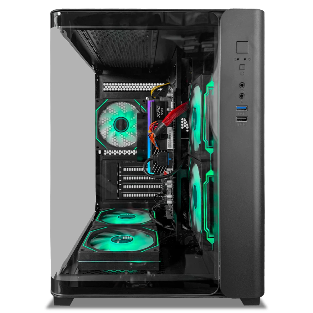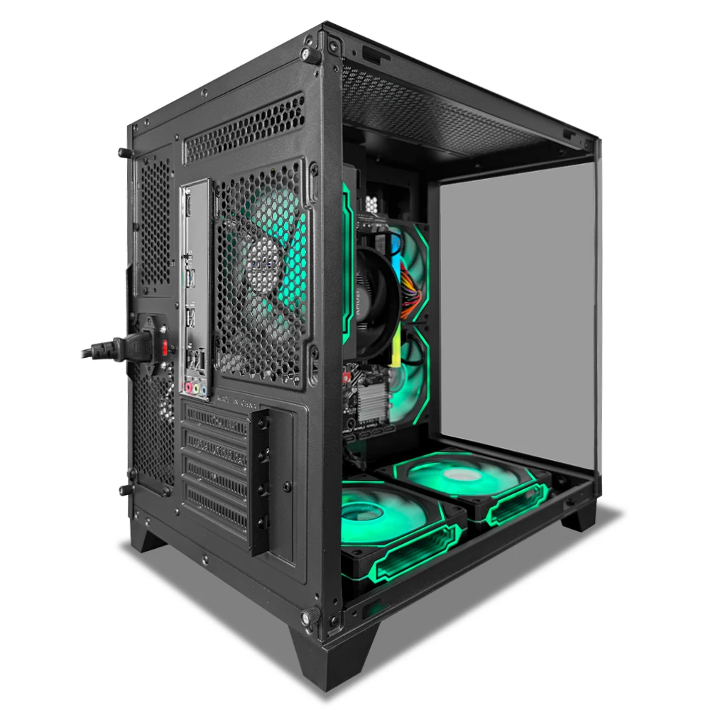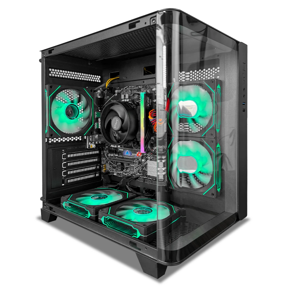 Este equipo incorpora 16GB de memoria DDR5 a 6000MT/s con perfil AMD EXPO, 512GB de almacenamiento M.2 NVMe para arranques rápidos y buena respuesta del sistema, además de refrigeración mediante el AMD Wraith Spire Cooler. Todo se ensambla en el chasis CL-W28 ATX, con una configuración de 5 ventiladores de 120 mm (2 laterales, 2 inferiores y 1 trasero) que favorecen el flujo de aire interno. La energía está a cargo de una fuente de 350W, suficiente para el consumo eficiente de esta configuración.