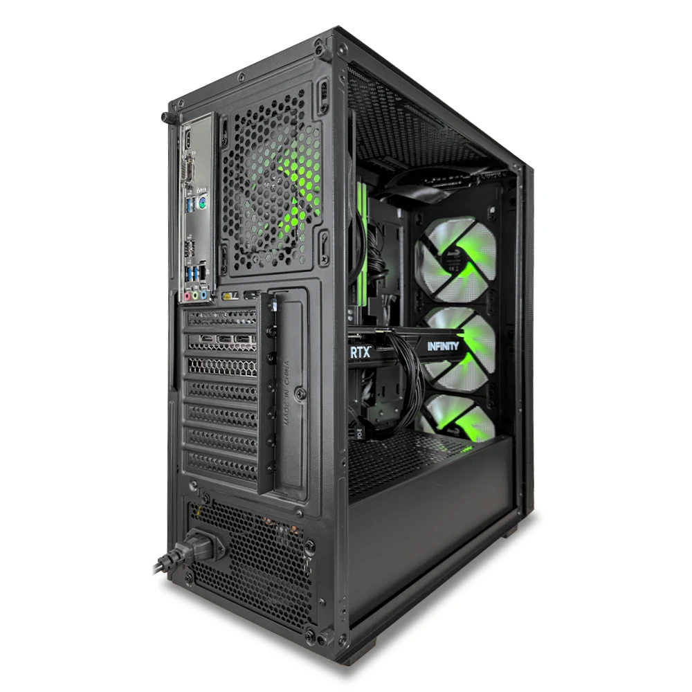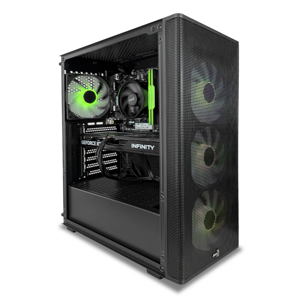 Equipa 32GB de RAM DDR5 HIKSEMI RGB a 6000MT/s para que nada se quede atrás, junto con un veloz SSD Kingston NV3 de 1TB, perfecto para iniciar programas, guardar proyectos y cargar juegos en segundos. El chasis Iceberg Designer G BK V2, con ventilación frontal de triple ventilador y panel lateral en vidrio templado, proporciona un diseño sobrio, buena refrigeración y espacio interior optimizado para futuras actualizaciones.