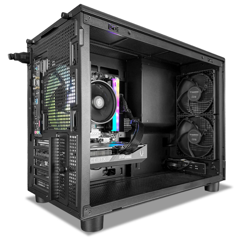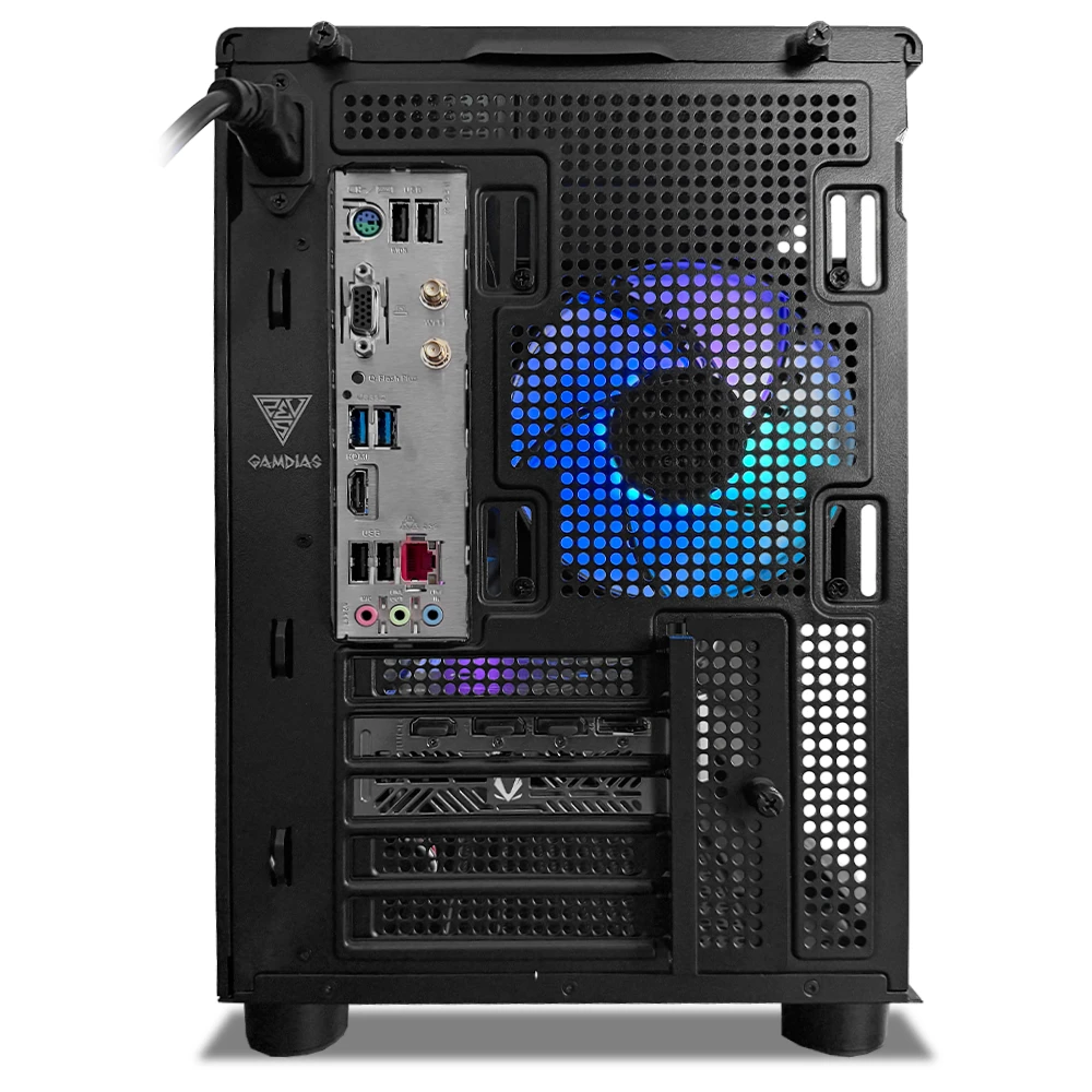 Este equipo incorpora 32GB de memoria DDR5 (2x16GB) a 6000MT/s con perfil AMD EXPO, 1TB de almacenamiento M.2 NVMe Kingston NV3 para tiempos de carga rápidos y refrigeración mediante el AMD Wraith Stealth. Todo se ensambla en el Gamdias ATHENA M4M ATX ARGB en color negro, con 2 ventiladores frontales y 1 trasero de 120 mm que optimizan el flujo de aire, alimentado por una fuente Gamdias Helios M2 de 750W 80 Plus Silver para un funcionamiento estable.