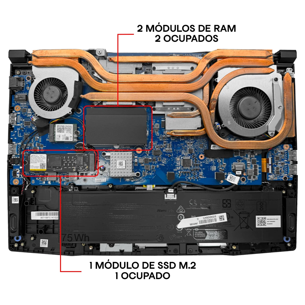 - Batería: 4 celdas, 75 Whr (Li-ion, 15.48 V)