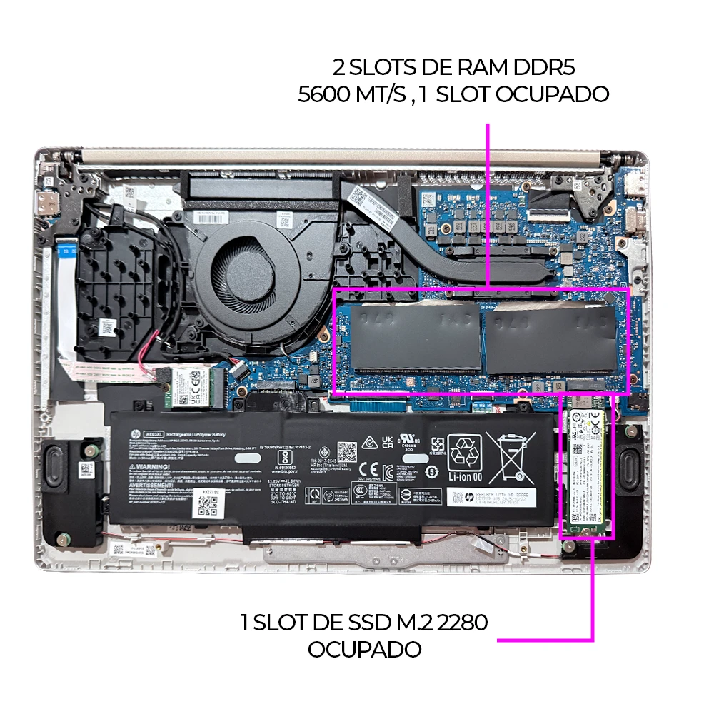 Dispone de 1 slot SSD M.2 2280 (ocupado), lo que permite reemplazar la unidad por una de mayor capacidad en el futuro.
