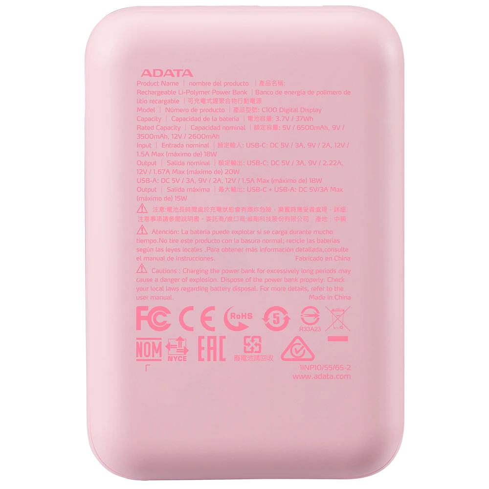 Inicio / Energía y Protección / Power Bank Adata C100 con Pantalla Digital USB-C Rosa (10.000 Mah)Power Bank Adata C100 con Pantalla Digital USB-C Rosa (10.000 Mah)