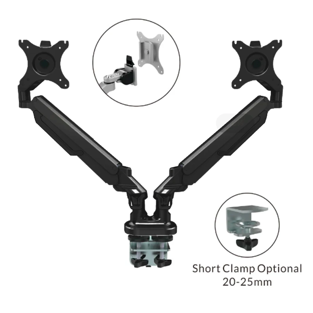 Es compatible con monitores de 17" a 32" y tiene una capacidad máxima de carga de 2 a 9 kg, lo que lo hace adecuado para la mayoría de las pantallas modernas. Su rango de inclinación va de -90° a 15°, permitiendo ajustar el ángulo de visión según tus necesidades. Además, la instalación es fácil y versátil, con opciones de montaje mediante abrazadera o ojal.