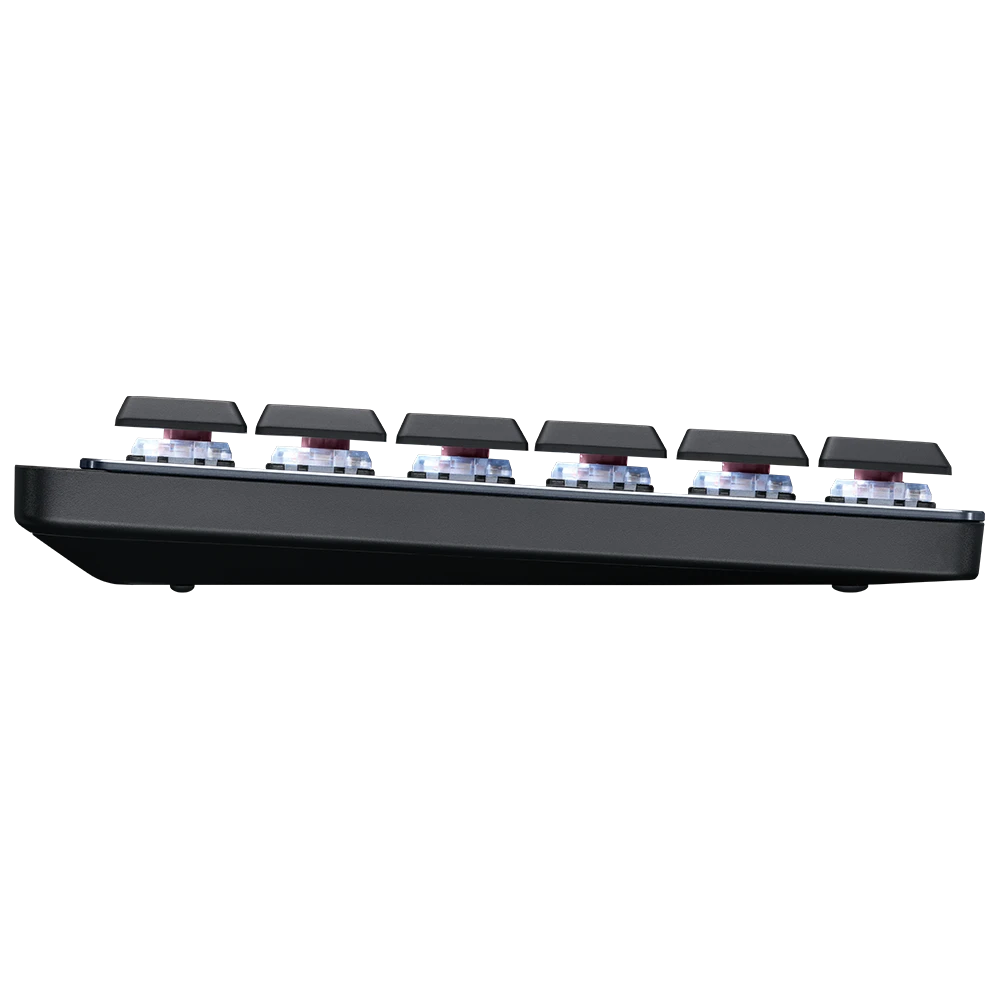 Diseño compacto (sin teclado numérico) y de perfil bajo: perfecto para espacios pequeños y para mantener una postura ergonómica, acercando el ratón al centro y aliviando tensión en hombros y muñecas.