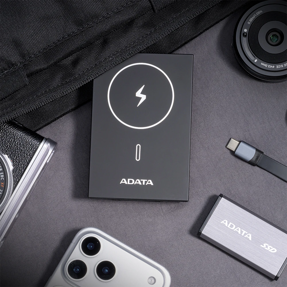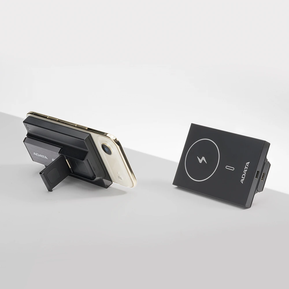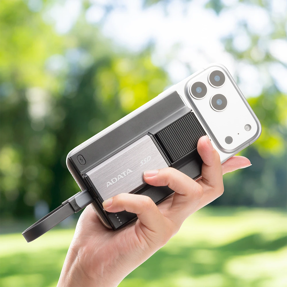 El ADATA SR800 Magnetic Power Bank SSD es un dispositivo innovador que combina almacenamiento externo de alta velocidad con batería portátil en un solo equipo. Diseñado para usuarios móviles, permite guardar archivos mientras cargas tu smartphone u otros dispositivos compatibles.