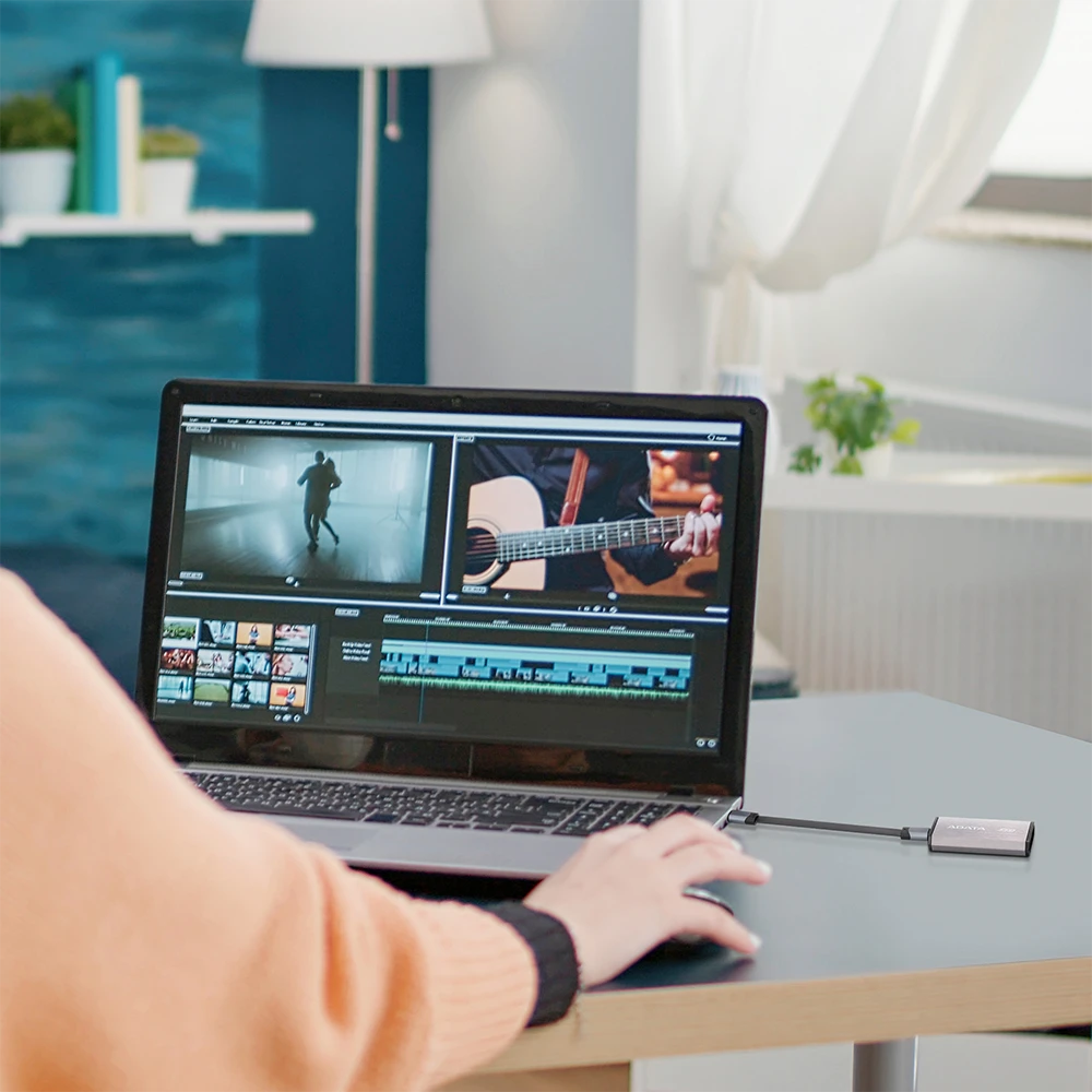 Su diseño compacto y portátil lo hace fácil de llevar, mientras que la tecnología SSD ofrece mayor velocidad y seguridad frente a discos tradicionales.